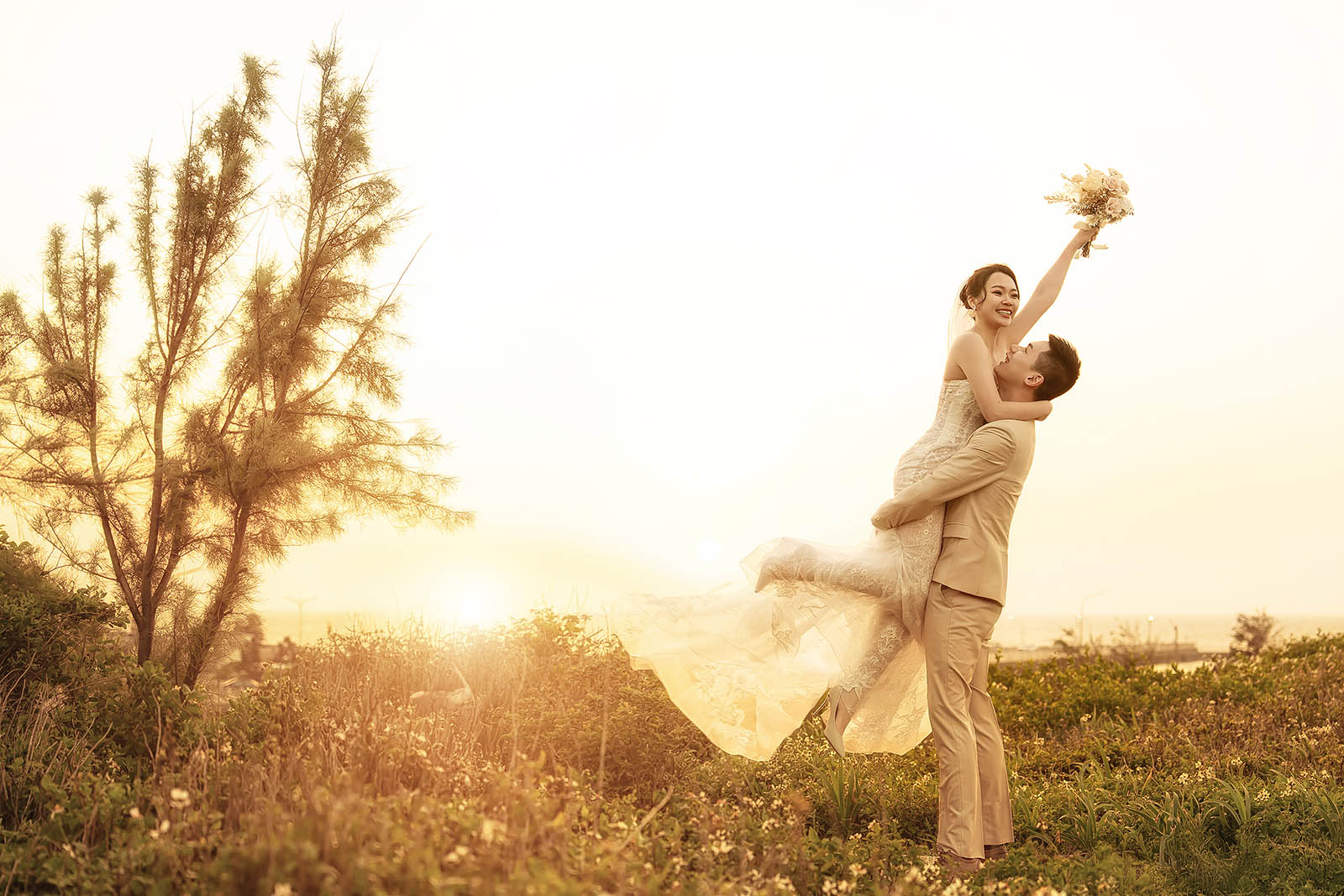 無論是輕柔的海風,還是絢爛的晚霞,都增添了無限的浪漫與詩意。我們一起在這個夢幻的地方,記錄下屬於你們的愛情故事,讓每一張照片都成為永恆的回憶。